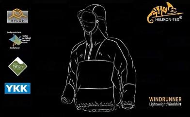 HELIKON WINDRUNNER® WINDSHIRT - WINDPACK® представляет собой прочный и ультра легкий анорак с умеренной защитой от ветра, дождя и грязи.WINDRUNNER выполнен из легкой быстросохнущей нейлоновой рип-стоп ткани с запатентованным покрытием DuPont™ Teflon®. Данное покрытие обеспечивает хорошую вентиляцию и отвод влаги при любом уровне активности.