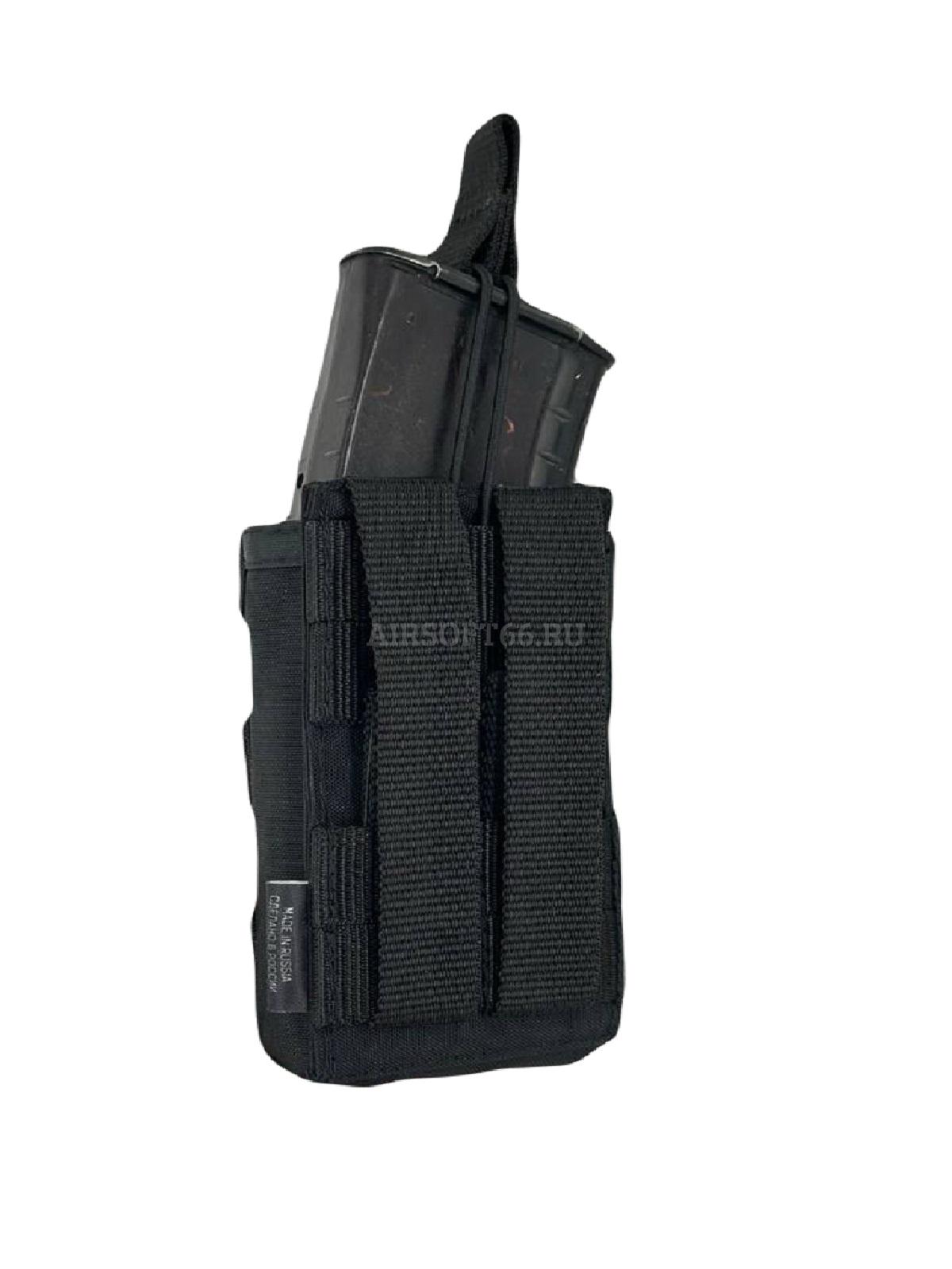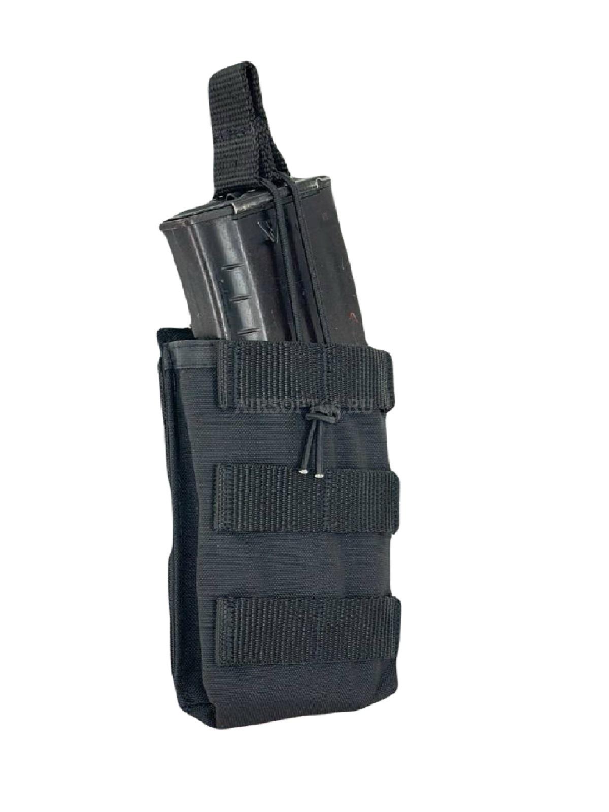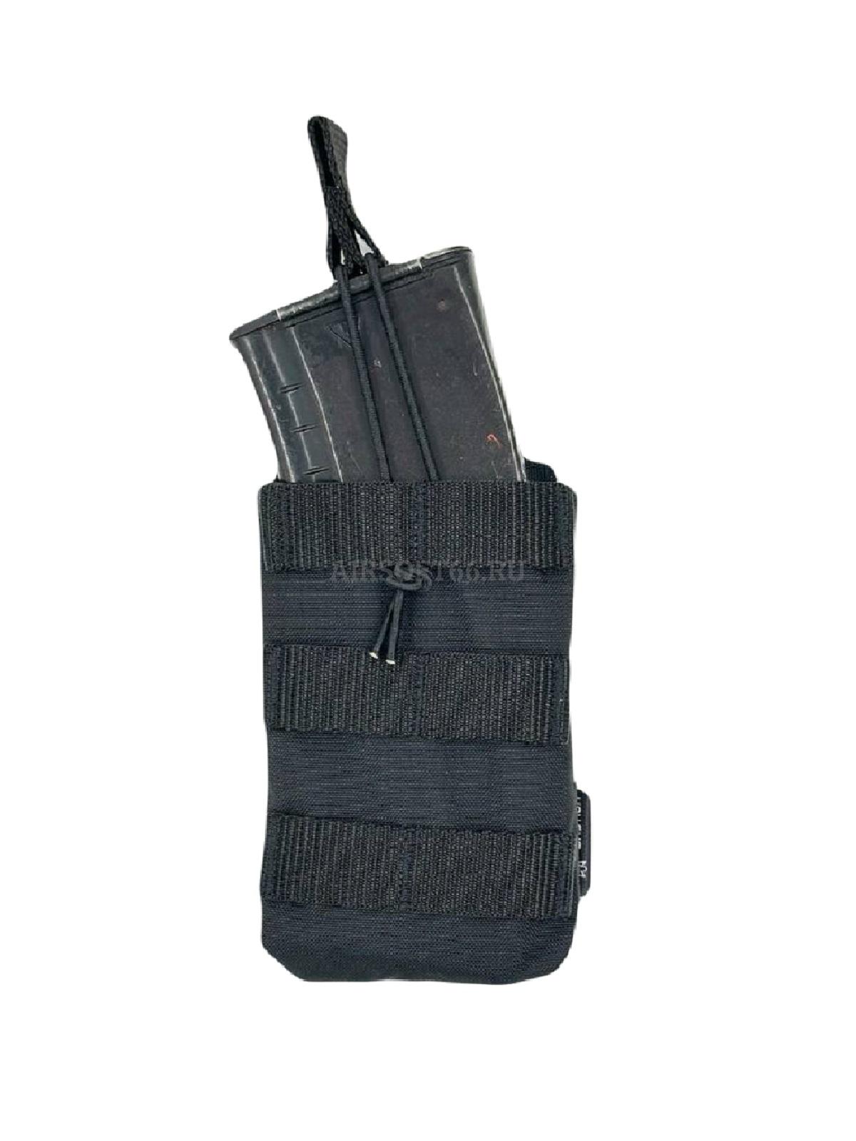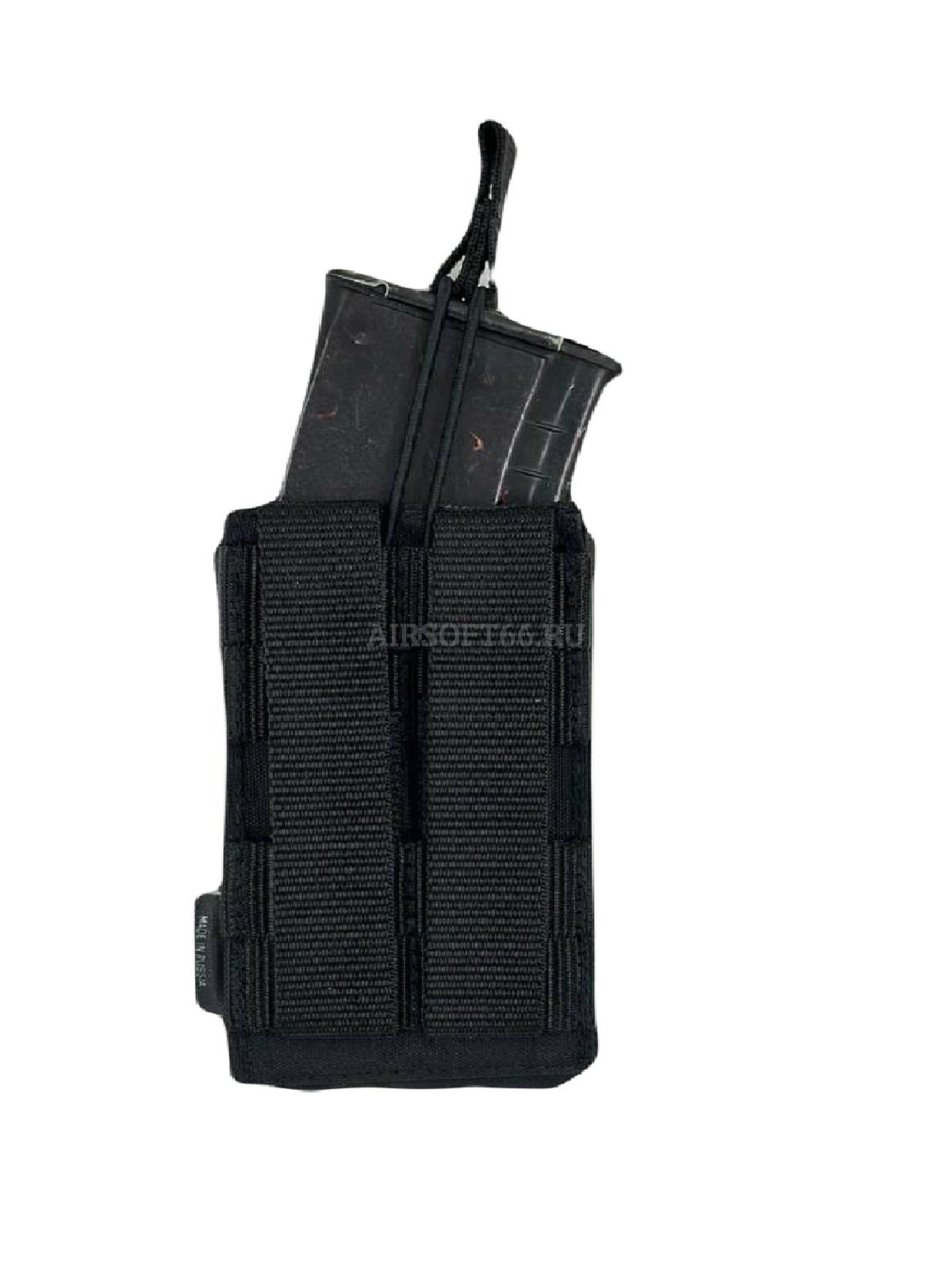 Подсумок предназначен для стандартных магазинов AR15/АК-серий, либо другого, схожего по габаритам. Запирается эластичным шнуром со стропой, что позволяет быстро извлекать магазин.