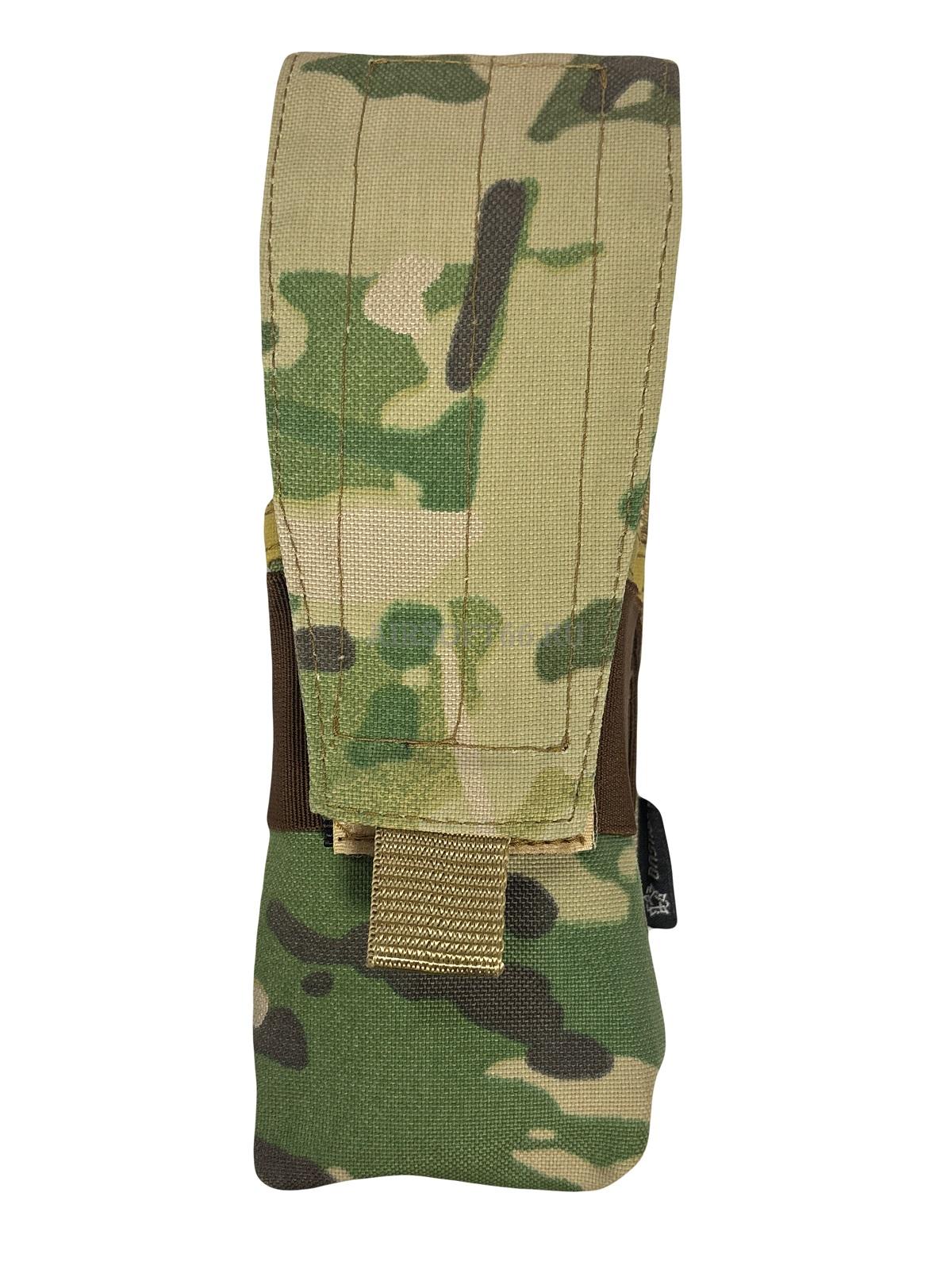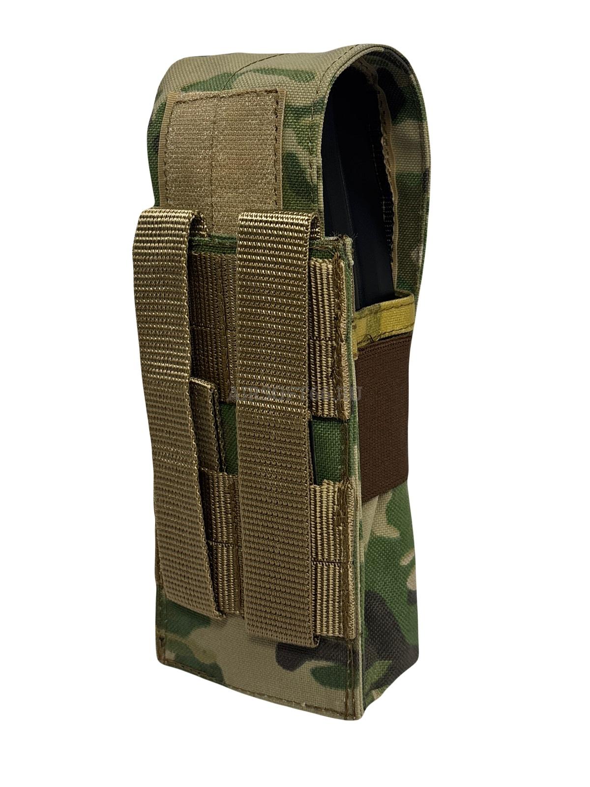 Данный подсумок подходит для размещения на нагрудных платформах, ременно-плечевых системах, боевых поясах или бронежилетах.