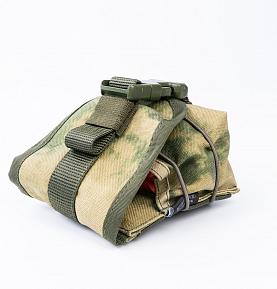 Подсумок закрепляется на системе крепления MOLLE, занимая две ячейки в ширину.