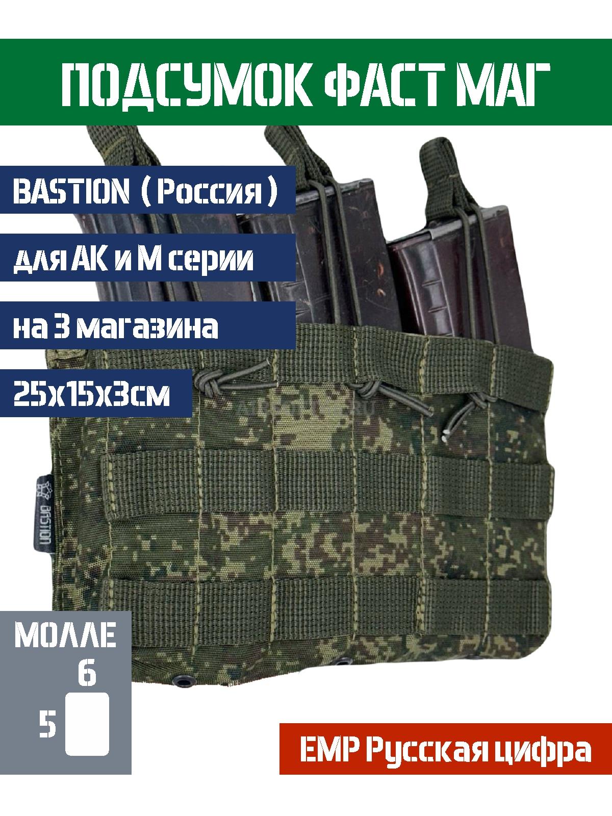 Подсумок тройной автоматный Фастмаг Bastion Цвет ЕМР Русская цифра