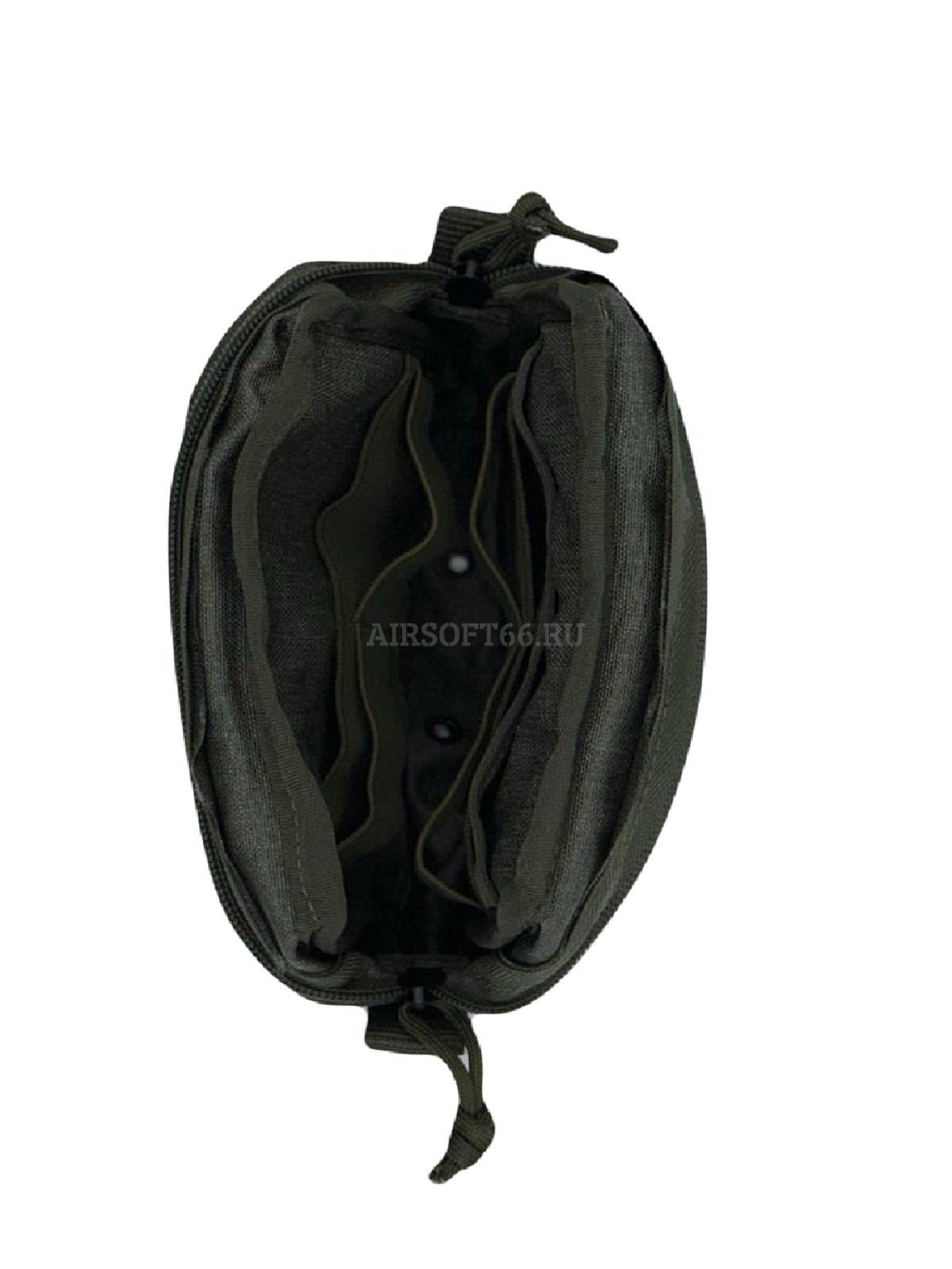 Габариты подсумка составляют 15 см в ширину, 12 см в высоту и 6 см в глубину. Внутри подсумка расположен дополнительный карман и усиленные резинки, которые позволяют организовать внутреннее пространство и закрепить необходимые вещи.