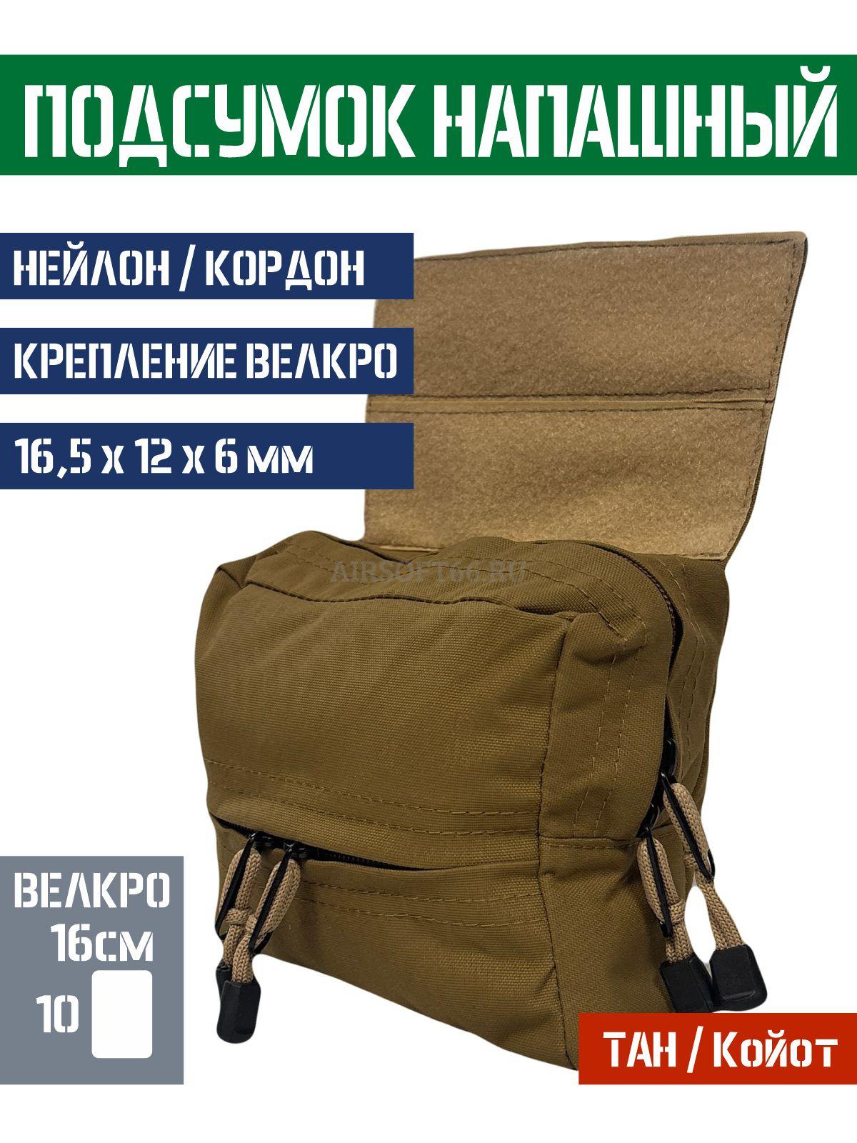 Габариты подсумка составляют 16,5 см в ширину, 6 см в глубину и 12 см в высоту. Это делает его удобным для ношения на бронежилете или разгрузочной системе.
