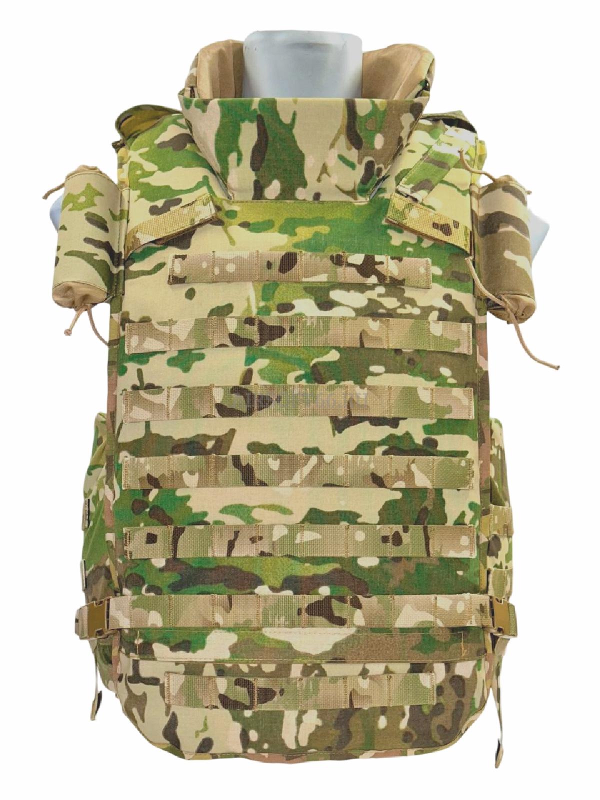 На груди, поясе и спине бронежилета нашиты ячейки PALS / MOLLE, на которых можно закрепить подсумки, кобуру и другое снаряжение. В верхней части бронежилета есть несъемный воротник, который можно расстегнуть при необходимости.